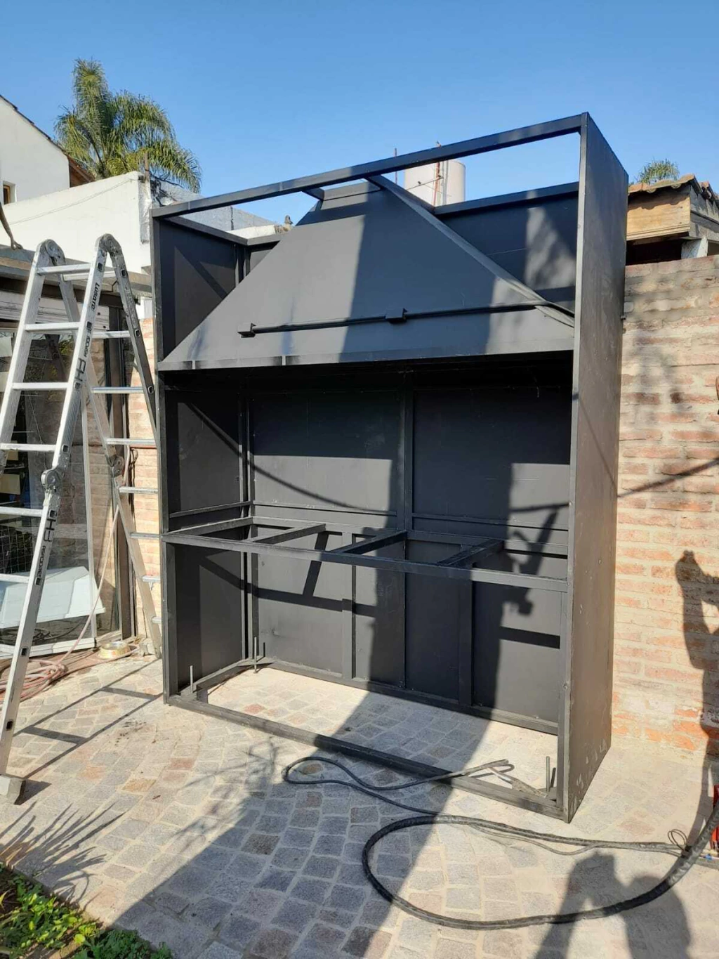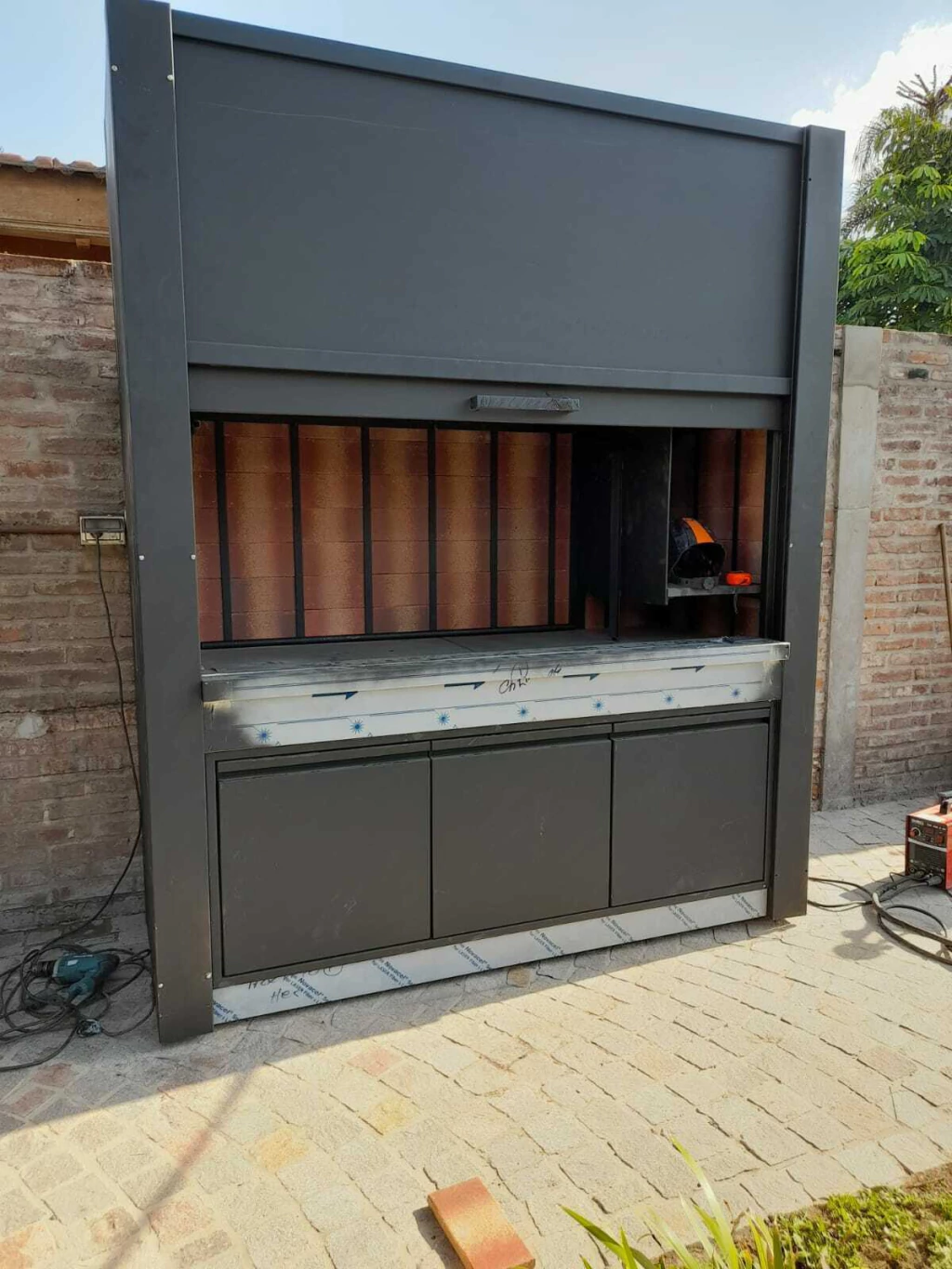 Frente de Parrilla realizado en terminación anti óxido Negro Con estructuctura completa.